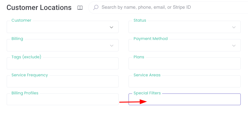 On the customer location level (Customers > Locations), you can now filter by "Special Filters" - this includes, duplicate address, service notes, unassigned locations, service windows, and more!